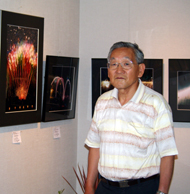 中村靖彦写真展がギャラリー茶房・田園で6日まで行われている。今回で5回目となる中村さんの花火を写した写真は、他の追従を許さない見事なでき。全紙3点を含む、半切とワイド4ッの21点で、会場狭しと飾られている。 祇園まつりの推薦作品である「台...