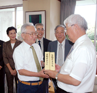 早川市長に完成報告する豊橋市百年史編集委員の皆さん