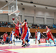 地元豊川のファンを沸かせたフェニックス(豊川市総合体育館で)
