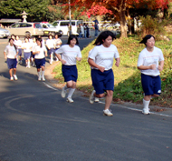 ゴール目指し力走する生徒たち (石巻山登山口で)