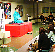 品川心中を演じる微笑亭さん太さん(豊橋市美術博物館で)