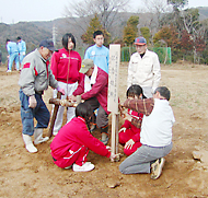 蒲郡市形原町の形原神社の背後に迫る春日山(かすがさん)で22日、サクラの名所復活をめざす住民グループ「春日桜会」(市川薫代表、会員25人)が植樹をした。形原中学校の生徒約60人と付近の住民ら10人が協力した。 植樹したのは、日本花の会が無...