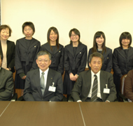 佐原市長、加藤教育長を囲んで豊橋商業高校の生徒と教員ら(豊橋市役所で)