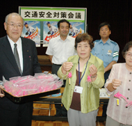 夏の交通安全運動を前に29日、田原市内の手芸サークルが作った手作り交通安全マスコットが、交通安全協会田原支部(山田俊郎支部長)に贈られた。 この日贈られたのは、ピンク色のリボンで作った金魚のマスコット200個。「ゆっくり走ろう」などと書か...