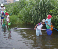 蒲郡市の竹島水族館は18日、三谷北通の西田川で夏休み企画「ドキドキ川辺の探検ツアー」を行った。公募に応じた市内外の親子ら9組、24人が参加した。 この日の西田川は前日の雨で水量がやや多かったが、水族館スタッフから捕獲の仕方を教わった参加者...