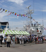 「すずか」見学で行列する市民(みなとフェスティバルで)