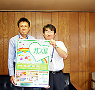 ガス展をPRする中部ガスの鈴木氏㊨と中西氏(東海日日新聞社で)