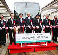 豊橋鉄道(豊橋市南松山町、水野忠之取締役社長)の市内線T1000形(LRV「ほっトラム」)がこのほど、鉄道友の会(須田寛会長)の09年「ローレル賞」に選ばれた。その記念に25日、市内線駅前停留場で受賞式が開かれ、関係者や鉄道ファンらで受賞...