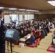 蒲郡市社会福祉協議会は18日、大塚町の市老人福祉センター「寿楽荘」で1人暮らしの高齢者を対象に交流会を開き、安全安心講話などを行った。約110人が参加した。 県警本部交通安全教育チーム「あゆみ」が交通事故防止をテーマに寸劇を披露。参加者は...