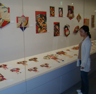 さまざまな凧を展示している会場(豊橋市二川宿本陣資料館で)