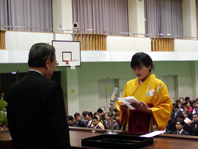 式では、各学部・学科の代表者が鈴木学長から学位記や卒業証書を受け取った。鈴木学長は「創造という志が皆さんの出身学校の校名としてだけでなく、一生皆さんを支えてくれることを確信しています」とお祝いの言葉を述べた。この後、卒業生を代表して経営情報学部の村松紀江さんと短期大学部の澤田めぐみさんがそれぞれあいさつ、卒業の喜びをかみしめ、社会に出てからの抱負を語った。