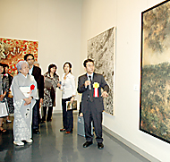 星野眞吾賞受賞者から作品の説明を受ける高畑さん