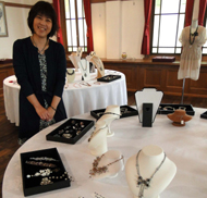 きらびやかなアクセサリーと進藤さん(鳳来館で)