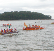 竹島沖を快走するいかだチーム