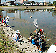 豊橋市東小浜町地内の柱大池で29日、豊橋市と地元住民の協働による外来生物の駆除と清掃、現地見学会が開かれ、約80人が参加した。 市民協働推進補助事業(つつじ補助金)により、中野小のPTAのOBを中心とする「なかの自然を守る会」(増田好則代...