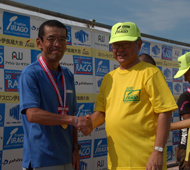 24回目を迎えた「2010トライアスロン伊良湖大会」(同実行委員会主催)は12日、猛暑の田原市伊良湖岬一帯で繰り広げられた。男子Aタイプ(全84・7キロ)は藤原裕司選手(46)=栃木県=が、5連覇を狙う谷新吾選手(43)=豊川市=を抑え、...