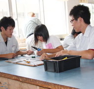 初めてでも共同で作業すれば大丈夫(豊川工業高校で)