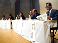 日本国政府や総務省などは29日、豊橋市神野ふ頭町のライフポートとよはしで「市町村合併をともに考える全国リレーシンポジウム2001inあいち」を開いた。同シンポには、県下で合併手続きが進んでいる合併先進の二地域のうち、豊川・宝飯地域から中野勝...