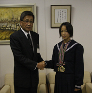 加藤教育長に笑顔で報告(豊橋市役所で)
