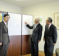 審査する真野税務署長(左)と磯村会長(中央)=豊橋税務署で
