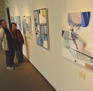 抽象画を展示する会場(豊川市桜ヶ丘ミュージアムで)