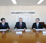 大手生保「アフラック(アメリカンファミリー)」日本支社(外池徹代表、東京都新宿区)と蒲郡信用金庫(吉川敏夫理事長)、蒲郡市の3者は19日、同市役所でがん検診受診率向上プロジェクト協定書の調印式を行った。 同信金のCSR(社会貢献活動)とし...