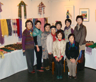 作品の数々と出品者のみなさん(ギャラリー茶房田園で)
