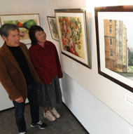 2人の水彩画を展示する会場(ギャラリー「一滴」で)