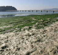 蒲郡・竹島海岸に漂着した季節はずれのアオサの大群