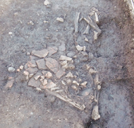 保美貝塚から出土した「盤状集骨葬」とみられる縄文時代の人骨