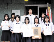 全国大会へ出場する豊橋商業高校弓道部の選手(東海日日新聞社で)