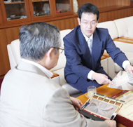 全国建具組合連合会主催の「第45回全国建具展示会」に出品した、田原市小中山町の川口博敬さん(34)=川口木工=の作品が、内閣総理大臣賞を受賞し、22日に同市役所を訪れ、鈴木克幸市長の喜びの報告を行った。父の秀丸さん(68)も23年前に同賞...
