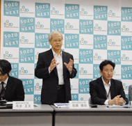 伊藤学長はじめ木村和夫副学長、それに経営学部長に就任する佐藤勝尚氏らが29日、豊橋商工会議所で記者会見し、概要を説明した。伊藤学長は「単なる看板のかけかえではない。新しい考え方で新しい学部を開設する」と強調した。