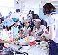 中部ガス(中村捷二社長)は1日、田原市清田小学校で「夏休み親子エコ・クッキング出前講座」を開いた。同校の「親子ふれあい授業」の一環で、2年生児童15人と保護者15人の30人が参加。エコ・クッキングを実践しながら、環境問題やエネルギーについて楽しく学んだ。