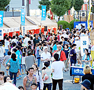 会場は催しを行う特設ステージと、食事やゲームなどが楽しめる屋台村「ヤマサ横丁」で構成。同社製品を値打ちに実演販売することもあり、毎年楽しみにしている市民も多く、開始時間の午後5時には、すでに大勢の家族連れでいっぱいだった。