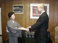 白井社長に寄託する西川会主