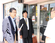 エフエム豊橋の見学をする小野新社長㊧と柴田新取締役㊥