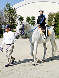 豊橋市賀茂小学校で7日、賀茂神社葵祭の「競馬(くらべうま)」の馬に乗る体験会が開かれた。同校児童798人は、馬にまたがって運動場をひと回りしたり、ニンジンを食べさせたりして、地元の伝統行事で活躍する馬たちと触れ合った。 学校の行き帰りに馬...