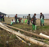 流木などのごみを拾い集める様子(渥美半島の里海を美しくする会提供)