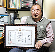 表彰の喜びを語る河内靖治さん(豊橋市植田町、河内左官で)