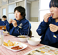 JA蒲郡市は5日、給食のデザートとして食べてもらおうと、ブランドミカン「箱入娘」を市内の中学校7校にプレゼントした。市内の小学校13校にも12日にプレゼントする。 学校へのプレゼントは5年前からで、全国に出荷する贈答用の高級ミカンの「箱入...