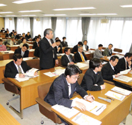 豊橋、田原の両市議が参加した、幹線道路整備に関する勉強会(豊橋市議会第1委員会室で)