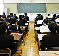 試験開始を待つ受験生(豊橋東高校で)