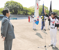 選手宣誓をする飯田啓愛大主将 (豊橋市営球場で)