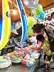 露店が並ぶ夜店の会場(豊橋公園で)