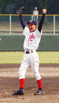 決勝進出を決めガッツポーズする森福投手(2年生時)