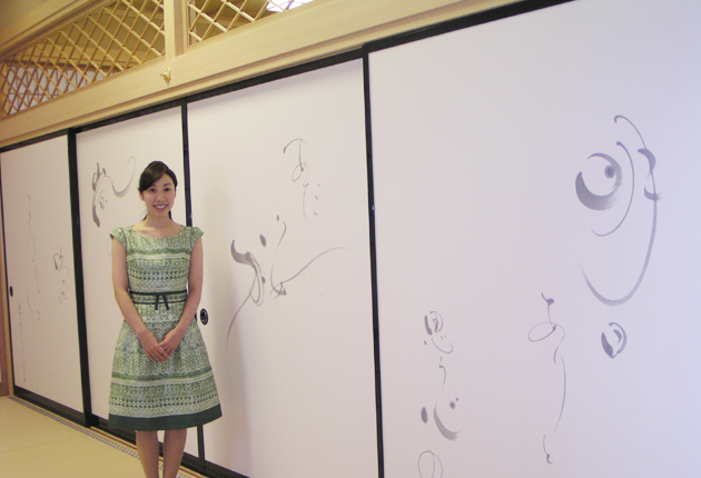 デザイン書道作家・鈴木愛さん(豊橋市老津町)の「8面の襖作品公開&デザイン書道展」が豊橋市花園町の応通寺(大河内智秀住職)大広間で開かれている。襖作品は、同寺が書院を4月に新築した時、鈴木さんが書いたもので、4面には「南無阿弥陀仏」、反対...