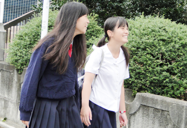 冬服の生徒と夏服の生徒が一緒に登校(藤ノ花女子高校で)