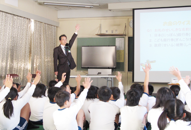 蒲信の「出前金融講座」(蒲郡市塩津小学校で)