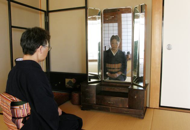 里帰りした常磐館ゆかりの三面鏡